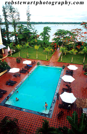 Swimming pool and tropical gardens at Victoria Cantho Hotel.