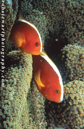 Skunk anemone fish are beautiful in Lankayan's water. Lankayan Island, Malayasian Borneo.