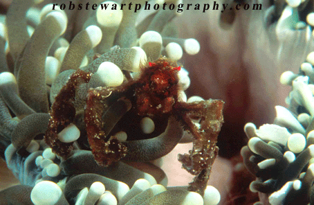 Orangutan crabs, named for their gangly hairy arms are found in anemonies.