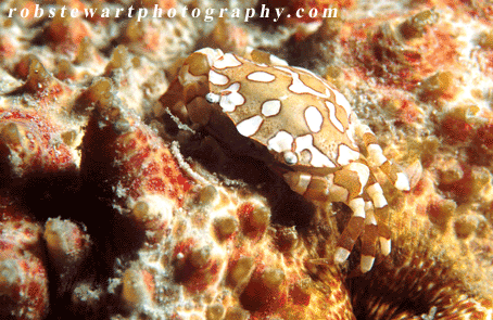 Commensal crab on sea cucumber, Kapalai Island, Malaysian Borneo