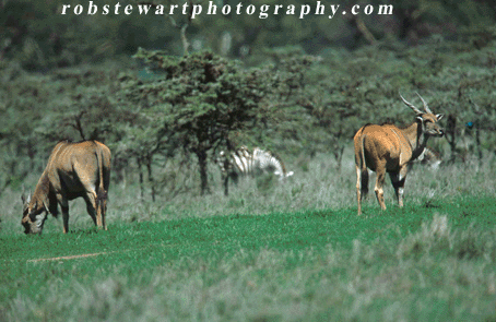 Elands and zebras graze together in Kenya
